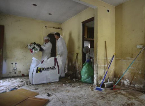 Habiéndose terminado los trabajos antes mencionados, empezamos a realizar una minuciosa limpieza de rastros de sangre y fluidos biológicos, con personal especialmente cualificado para esta labor y productos de limpieza especiales para este trabajo. Terminadas estas fases de trabajo y para terminar la labor volvemos a realizar un tratamiento de choque con ozono puro, hasta que el olor desaparezca por completo.